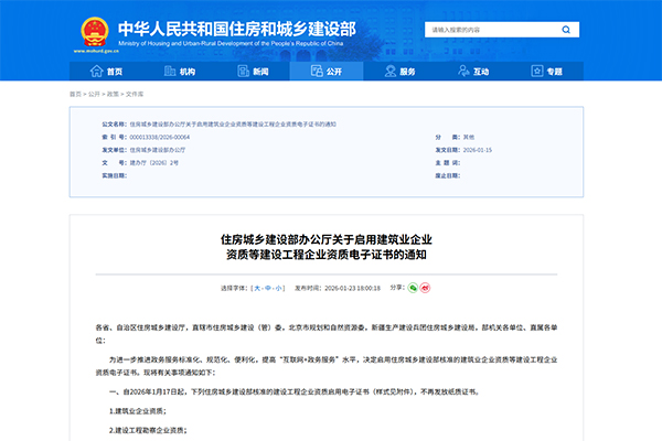 住房城乡建设部办公厅关于启用建筑业企业资质等建设工程企业资质电子证书的通知