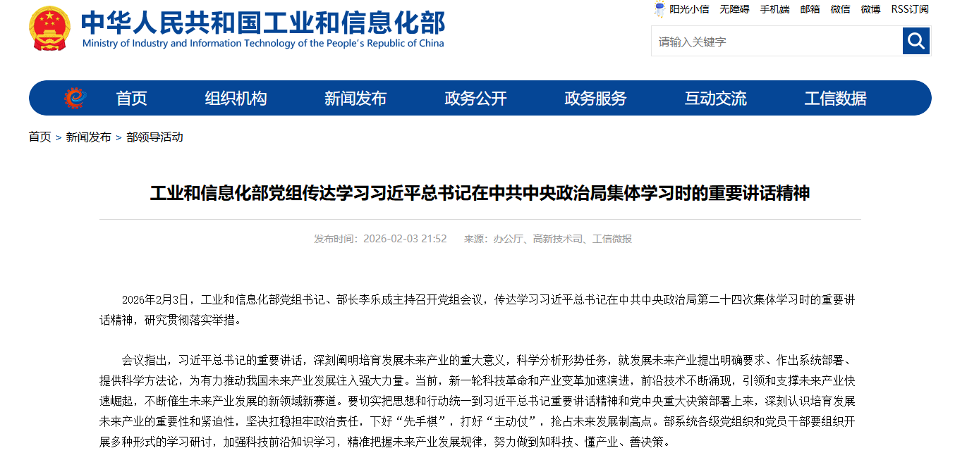 2026年2月3日,工业和信息化部党组书记、部长李乐成主持召开党组会议,传达学习习近平总书记在中共中央政治局集体学习时的重要讲话精神,并就培育发展未来产业作出系统部署。会议释放出明确信号:氢能已被列为国家未来产业梯次布局的重要赛道,将在新型举国体制下获得技术攻关与应用示范的“双轮驱动”。